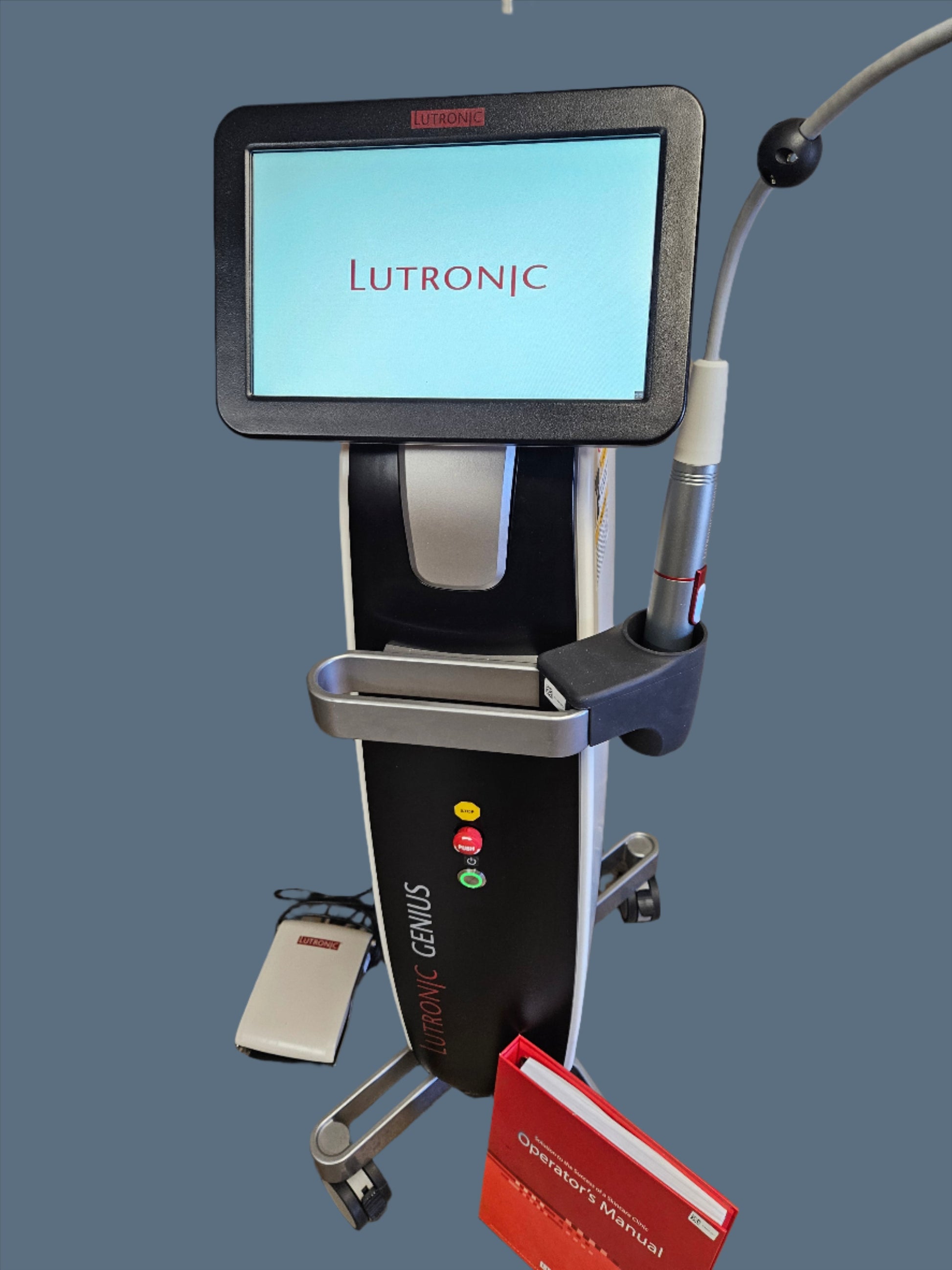 Lutronic Genius® facilitates the regeneration of collagen and elastin through coagulation, ideal for mitigating scars, skin texture, wrinkles, and laxity across the body. This RF Microneedling device delivers thermal energy into the dermis via micro-needles. Low-use, Less than 33,000 pulses. No aesthetic damage or scratches. Operators Manual, Quick Start Guide, and footpedal included.